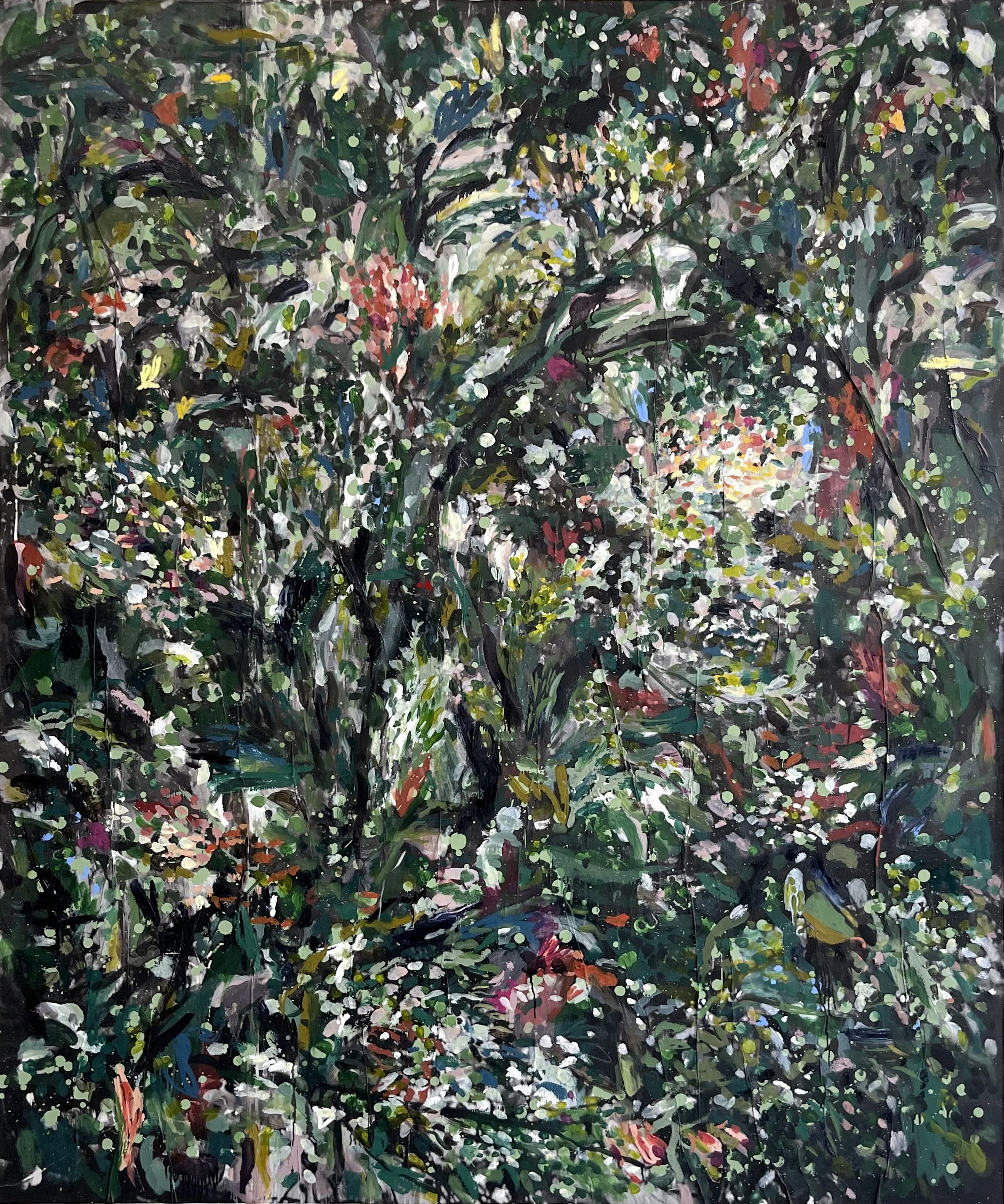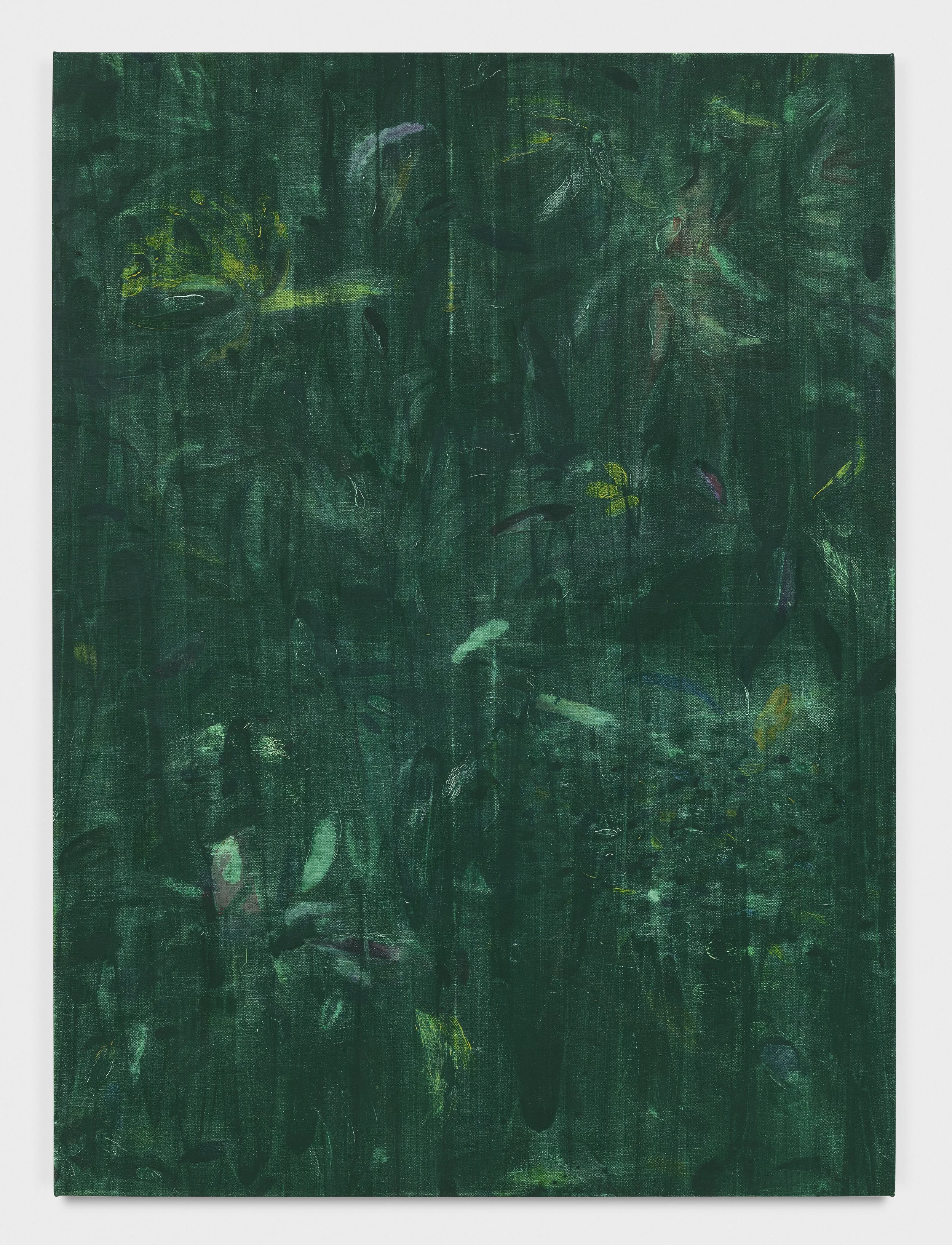 Visions of flora emerge from dense Emerald Green paintings. This luminous, almost supernatural green filters the landscape and contains a depth that appears three-dimensional.
