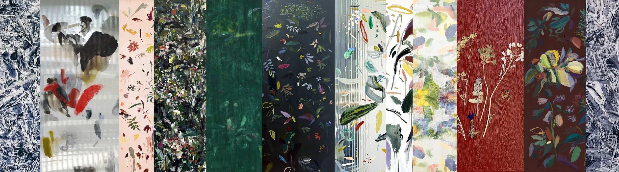 The Invisible Green series explores the melding of forms and color by time and memory. Abstracted petals of color overlap and evoke a tension between the seen and unseen.