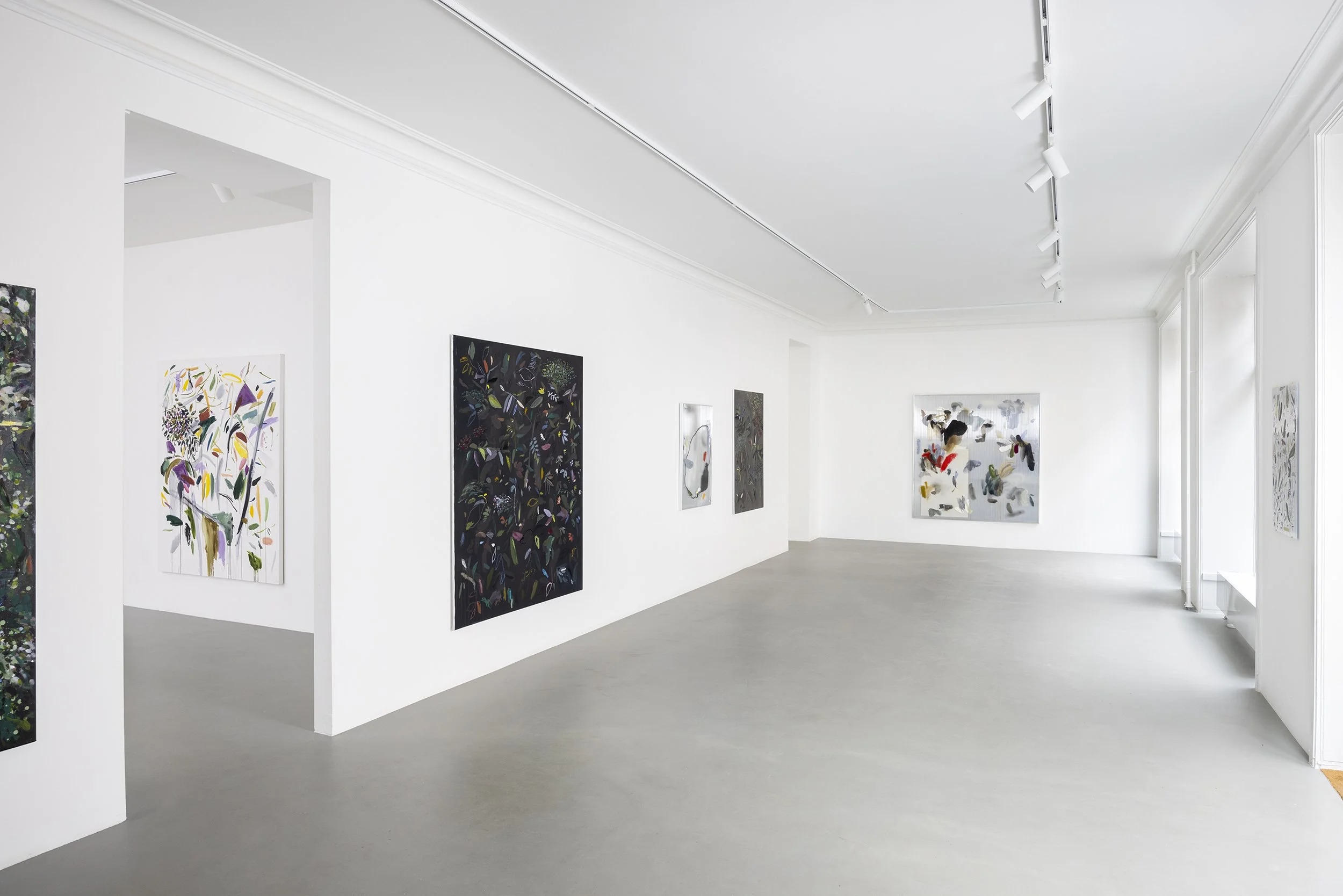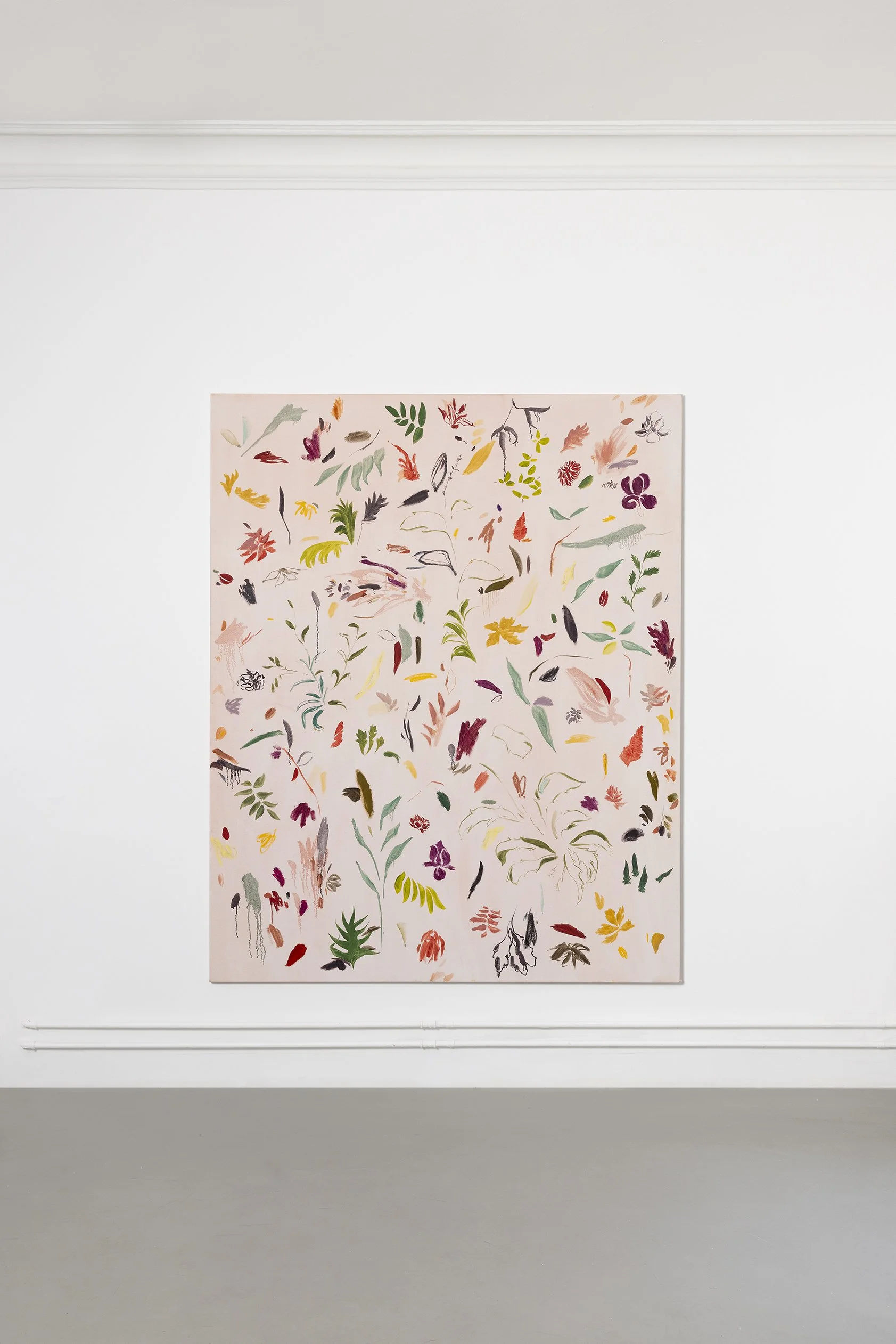 Sophie Kitching’s exhibition DENATURE offers a panorama of her most defining painting series, in which she approaches landscape through color, material, form, abstraction and visual saturation. There is no horizon line in her works, there are no borders, and the use of a bright and dark color palette conveys the sense that the depicted nature is simultaneously close and at a distance. Through the juxtaposition of pictorial approaches, the artist explores painting as an act of transformation. Her light touch contrasts with denser compositions, reminding us that the expression of nature knows no bound. Sophie Kitching’s distinctive mark-making spanning accross various surfaces invites us to wander in her polychromatic creations, imprinting the retina in a long-lasting way.